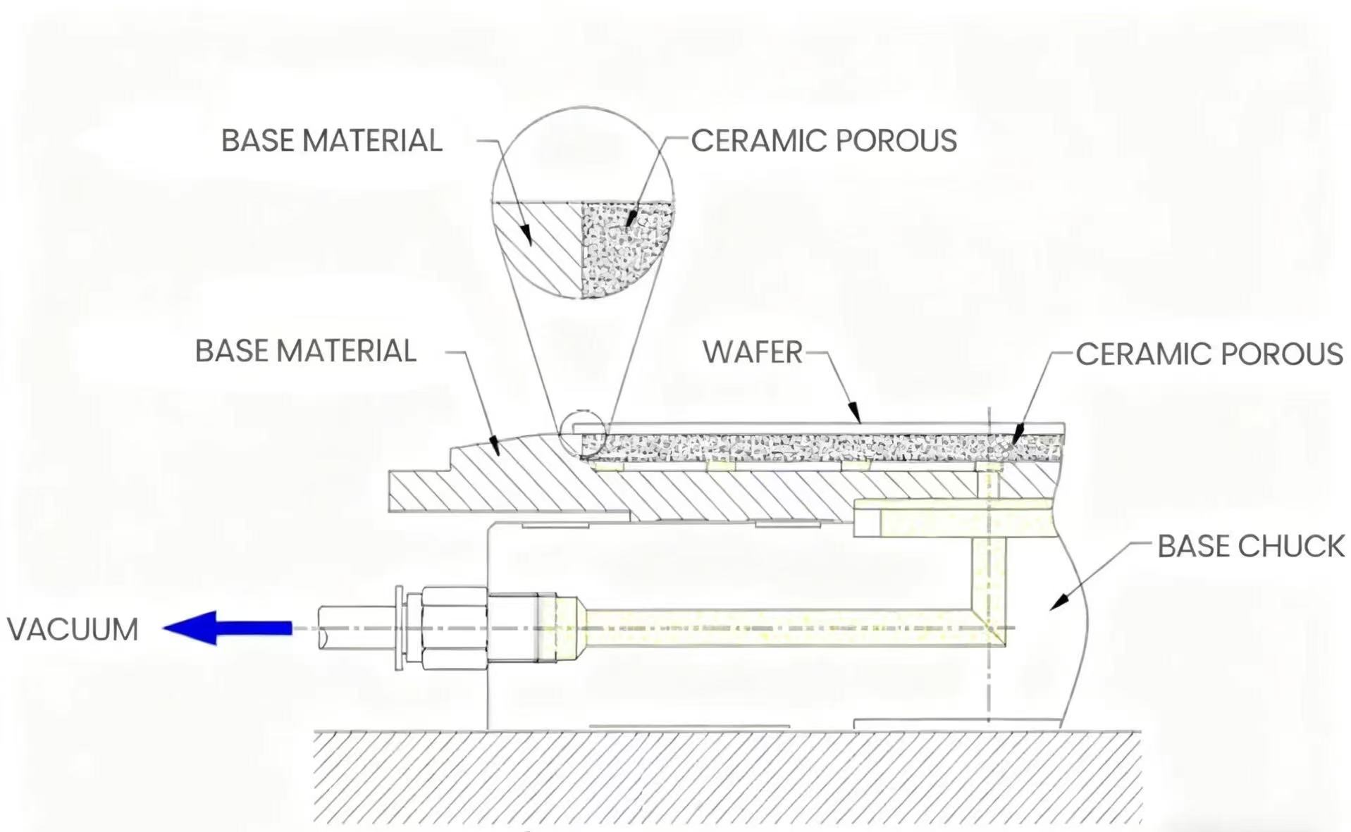 Zehaztasunez mekanizatutako zeramikazko mandril porotsu pertsonalizatuak adsortzio-indarraren banaketa uniformea eskaintzen du piezaren gainazalean, piezaren deformazioa edo mekanizazioko zehaztasunik eza modu eraginkorrean saihestuz indar irregularren aplikazioak eragindako. Gainera, korrosio kimikoaren erresistentzia sendoari eta tenperatura altuko erresistentzia paregabeari esker, pertsonalizatutako zeramikazko chuck porotsuak epe luzerako funtzionamendu egonkorra mantentzen du ekoizpen ingurune zaila eta konplexuetan.