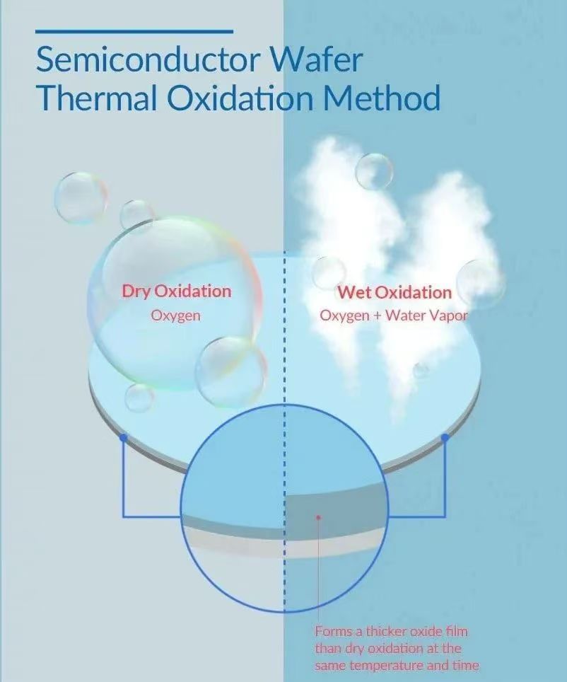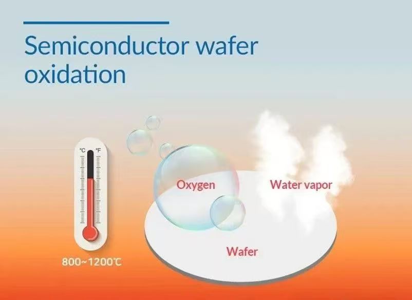 Oxidazio hezea siliziozko obleak tenperatura altuko ur-lurrun baten aurrean jarriz funtzionatzen du, eta horrek silizioaren eta lurrunaren arteko erreakzio kimikoa eragiten du silizio dioxidoa (SiO₂) sortzeko. Prozesu honek uniformetasun eta dentsitate baxuko oxido-geruzak sortzen ditu eta H₂ bezalako azpiproduktu desiragarriak sortzen ditu, normalean oinarrizko prozesuan erabiltzen ez direnak. Hau da, oxido-filmaren hazkuntza-tasa azkarragoa delako ur-lurrunaren erreaktibitatea oxigeno puruarena baino handiagoa delako. Hori dela eta, oxidazio hezea ez da normalean erdieroaleen fabrikazioaren oinarrizko prozesuetan erabiltzen.obleak, silizioaren eta oxidatzaileen arteko erreakzio kimikoa eraginez silizio dioxidozko (SiO₂) film babesgarria sortuz.