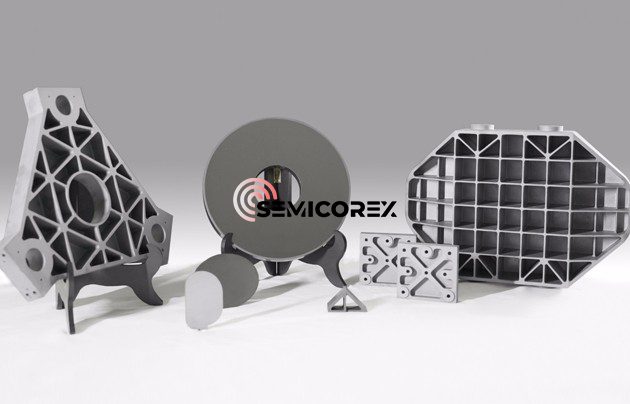 SiC Fin purutasun handikoa dasilizio karburoahautsa konformazio eta sinterizazio prozesu aurreratuak erabiliz. Horrela, erresistentzia mekaniko eta egonkortasun bikainak ditu baldintza termiko eta kimiko handietan. Siliziozko karburoaren propietate fisiko bereziek, hala nola, gogortasun handia, hedapen termiko baxua eta inertetasun kimiko bikainari esker, Fina tenperatura altuko plasma edo gas erreaktiboen inguruneetan egiturazko osagaia izatea ahalbidetzen dute, EPI eta grabaketa prozesuen ezaugarriak direnak.