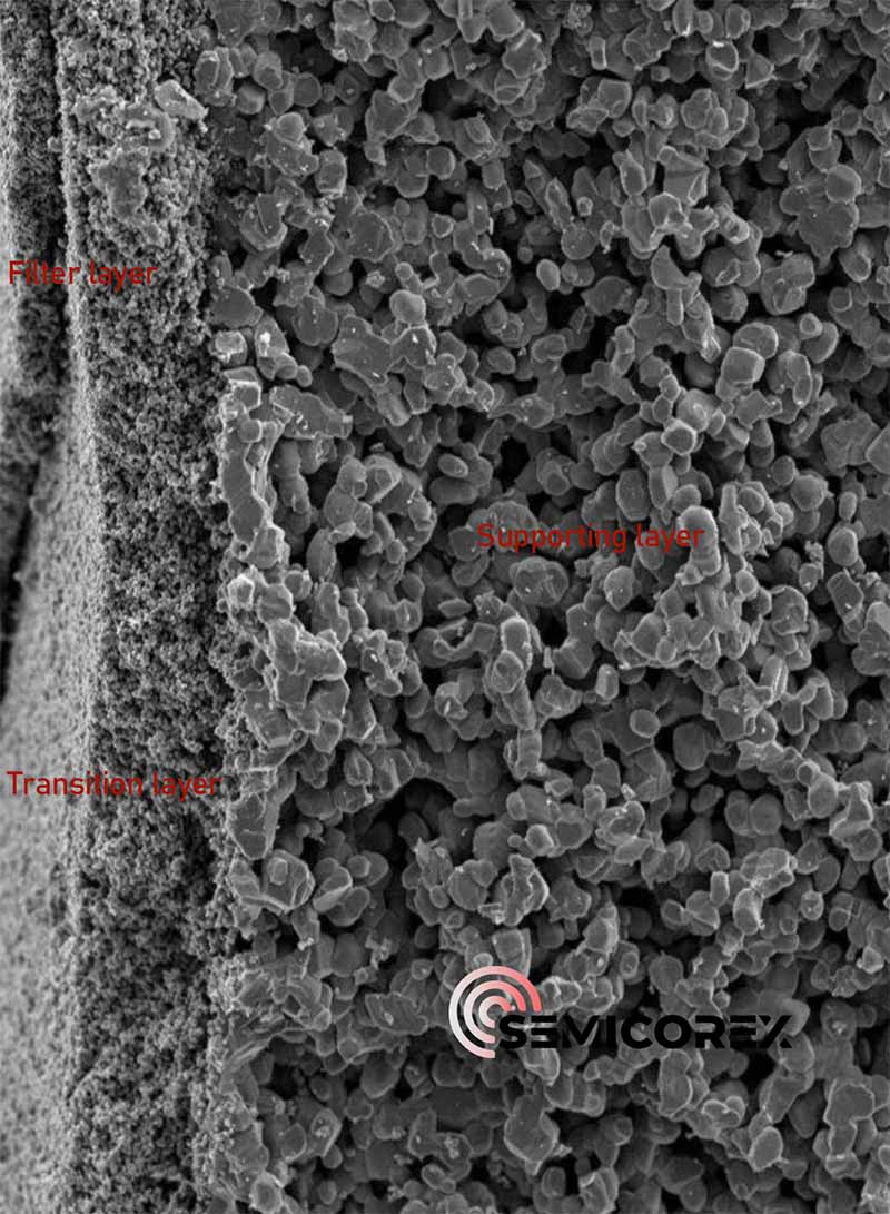 Semicorex Silizio Karburo Mintzak presio bidezko bereizketa prozesu batean funtzionatzen du. Hondakin-urak mintzaren gainazalean zehar igarotzen diren heinean, presio-diferentziak ur purua behartzen du 0,1 mikrako poro egitura zehatz batean zehar.