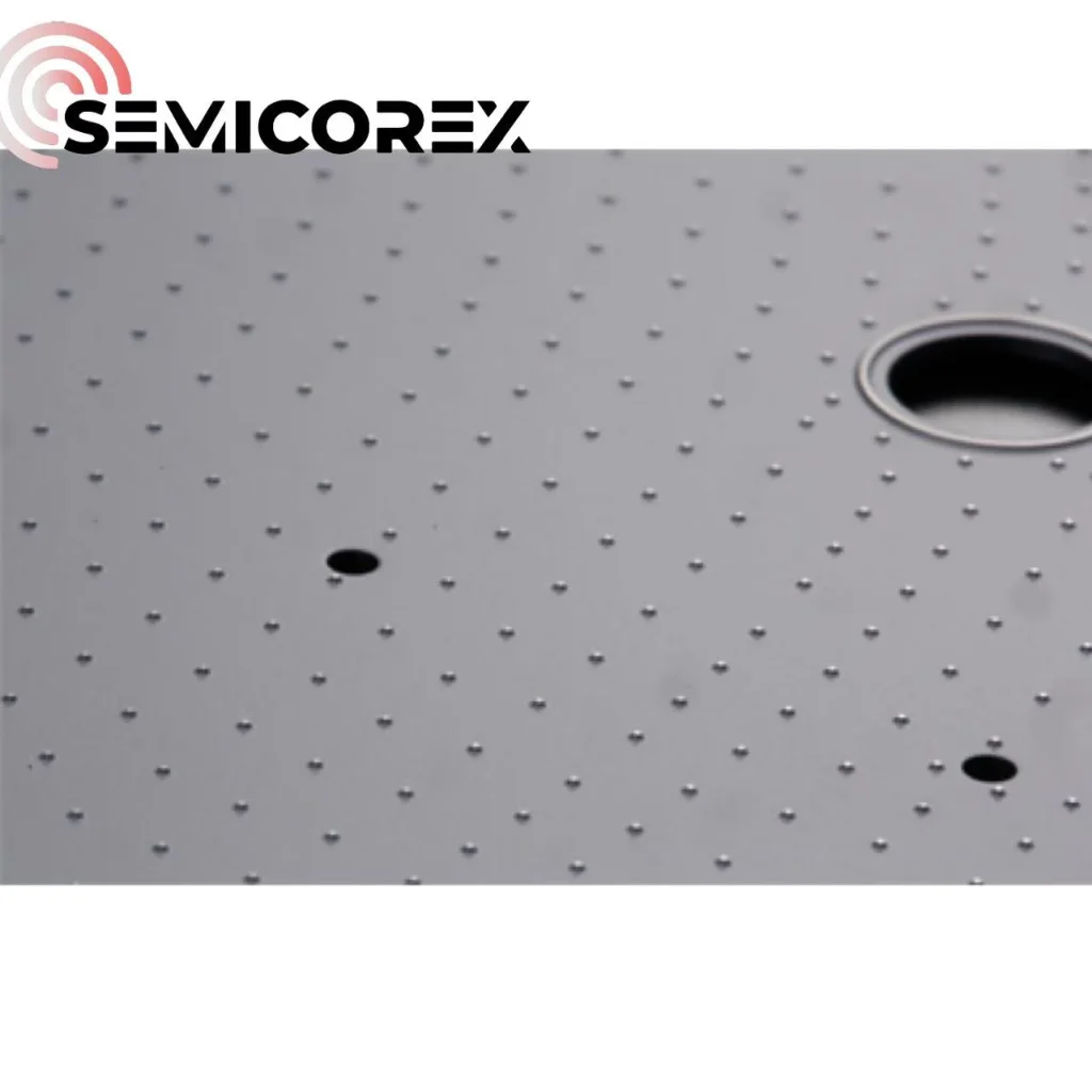 Semicorex-en azalerasilizio karburoapin chucks mikra tamainako kolpe ugariz osatuta dago. Kontaktu-eremua minimizatzen da oblearen atzealdearekin kontaktua kolpeetan bakarrik gertatzen delako, eta horrek eraginkortasunez saihesten ditu obleen marradurak, partikulen kutsadura eta markak.