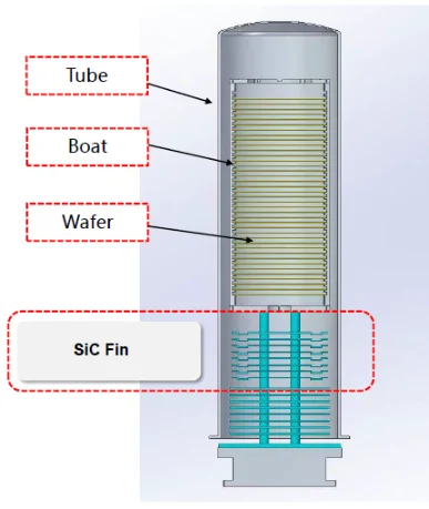 Semicorex solidoasilizio karburozko hegatsakNormalean isolamendu termikoko osagai gisa instalatzen dira erdieroaleen tratamendu termikoko ekipoen labe bertikalen hodietan, hala nola, RTP errekuzitzeko labeak eta difusio labeak. Semicorex siliziozko karburo solidoko hegatsak tenperatura altuko labeetan tenperatura-banaketa modu eraginkorrean erregulatu ditzake eta tenperatura altuek eragindako ateak zigilatzeko piezak prozesatzeko kalteak minimizatzen dituzte. Oxidazio hezearen funtzionamendu-baldintzetan, Semicorex silizio-karburo solidoko hegatsak erabil daitezke prozesuko emaitzetan eta prozesuko tenperatura baxuetan ur-lurrunaren kondentsazioak eragindako gailu erdieroaleetan eragin negatiboak eraginkortasunez saihesteko.