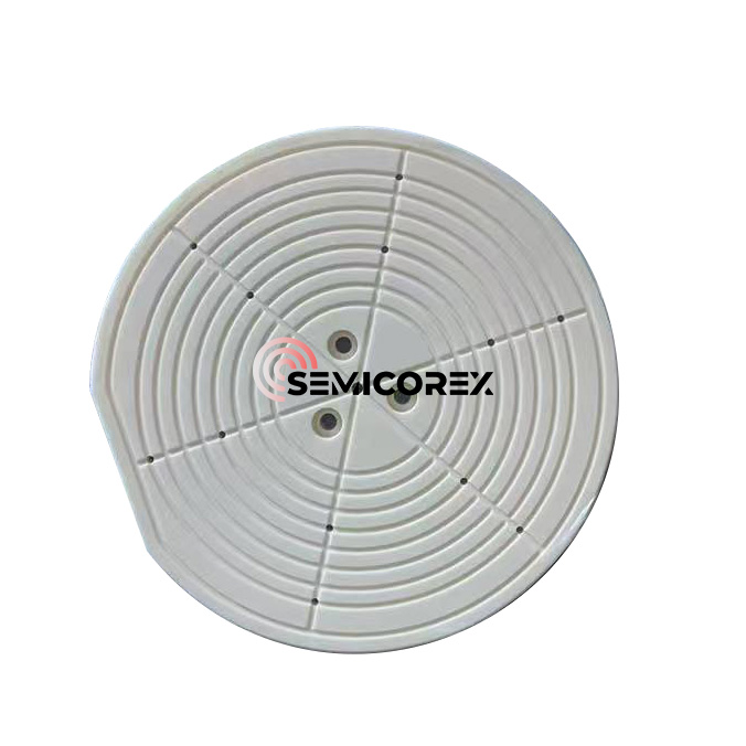 Wafer Edge Artezketa Semikorioa Chuck erdieroaleen fabrikazioan zehar egindako wafer ertz artezteko prozesurako egindako zeramikazko zati bat da. Zeramika garbitasun handiko, alumina zuria (aloka) da, indar mekanikoarekin, erresistentzia kimikoarekin eta dimentsioaren egonkortasunarekin, wafer artezteko prozesua laguntzeko. Teknologia berriek uretako diametro handiagoak eta egitura delikatuagoak behar dituztenez, gailuetan, Wafer ertz artezketa funtsezkoa da orain ertz txipa, mikro-cracking eta etekinak prebenitzeko. ALUMINA Zeramikazko Artezteko Chuck-ek fabrikazio eskakizun zorrotzak betetzeko oinarri finkoa eskaintzen du.