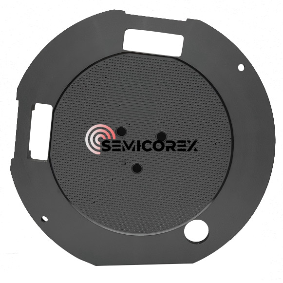 Wafer Vacuum Chucks gorputza fabrikatuta dagosilizio karburo sinterizatuadentsitate oso altuan fabrikatzen dena eta gailu erdieroaleetan erabiltzeko ezaugarri mekaniko eta termiko egoki guztiak dituena. Aluminio-aleazioak eta zeramika bezalako huts-hutseko material estandar batzuekin alderatuta, SiC trinkoak zurruntasun handiagoa eta dimentsioko propietate egonkorrak eskaintzen ditu.